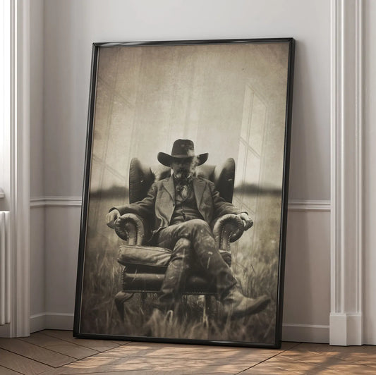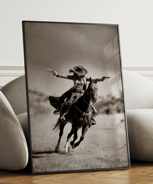 Cowgirl in Leather – Black and White Western Wall Art Print