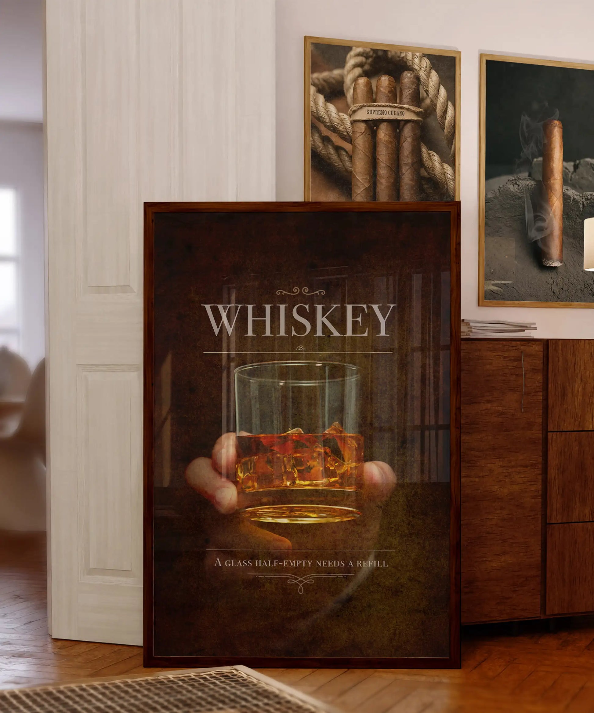 For those who know life’s too short for watered-down drinks or dull decor. This vintage-style whiskey print brings warmth, grit, and just enough humor to keep the conversation flowing. Perfect for bars, dens, or anyone who believes a half-empty glass is just a refill waiting to happen.