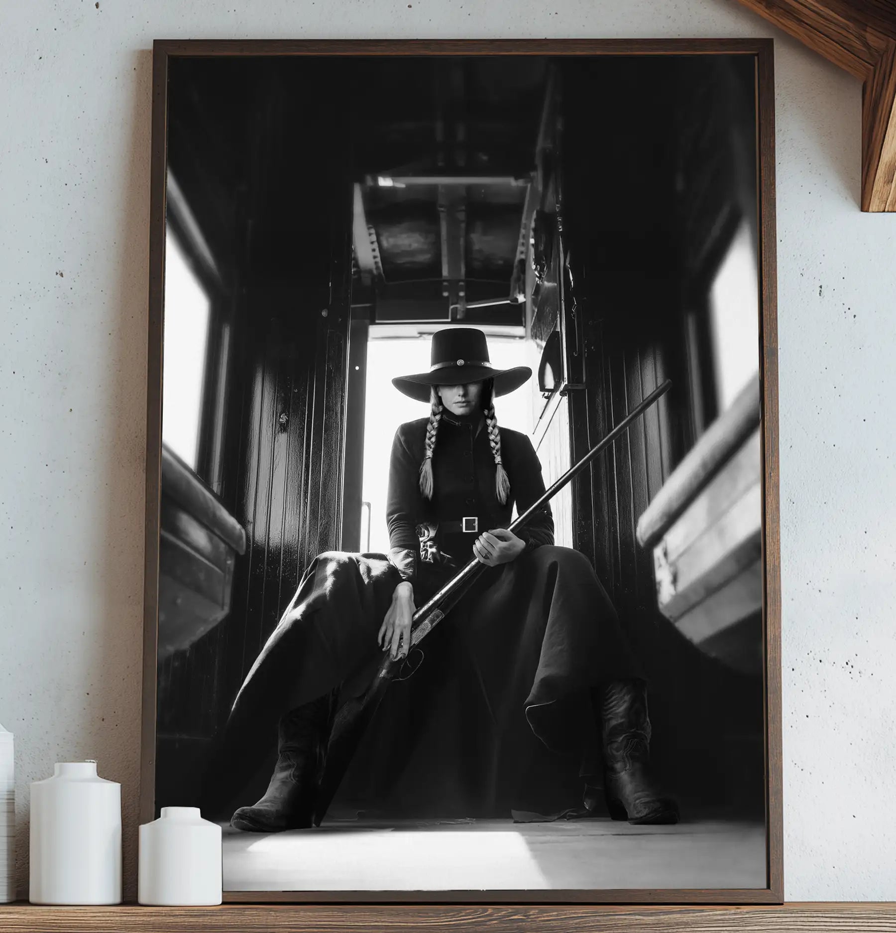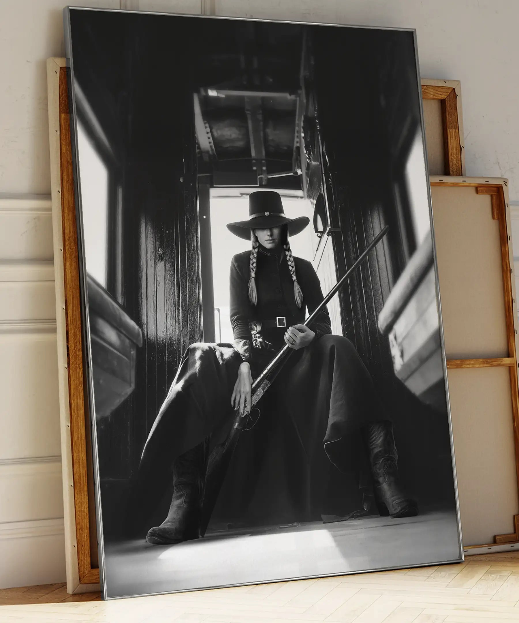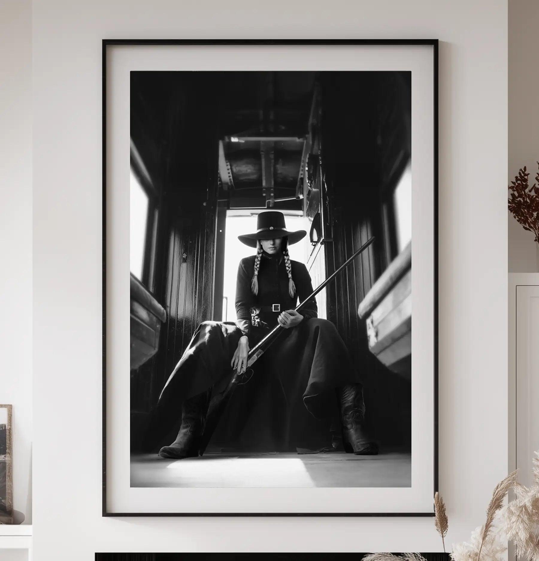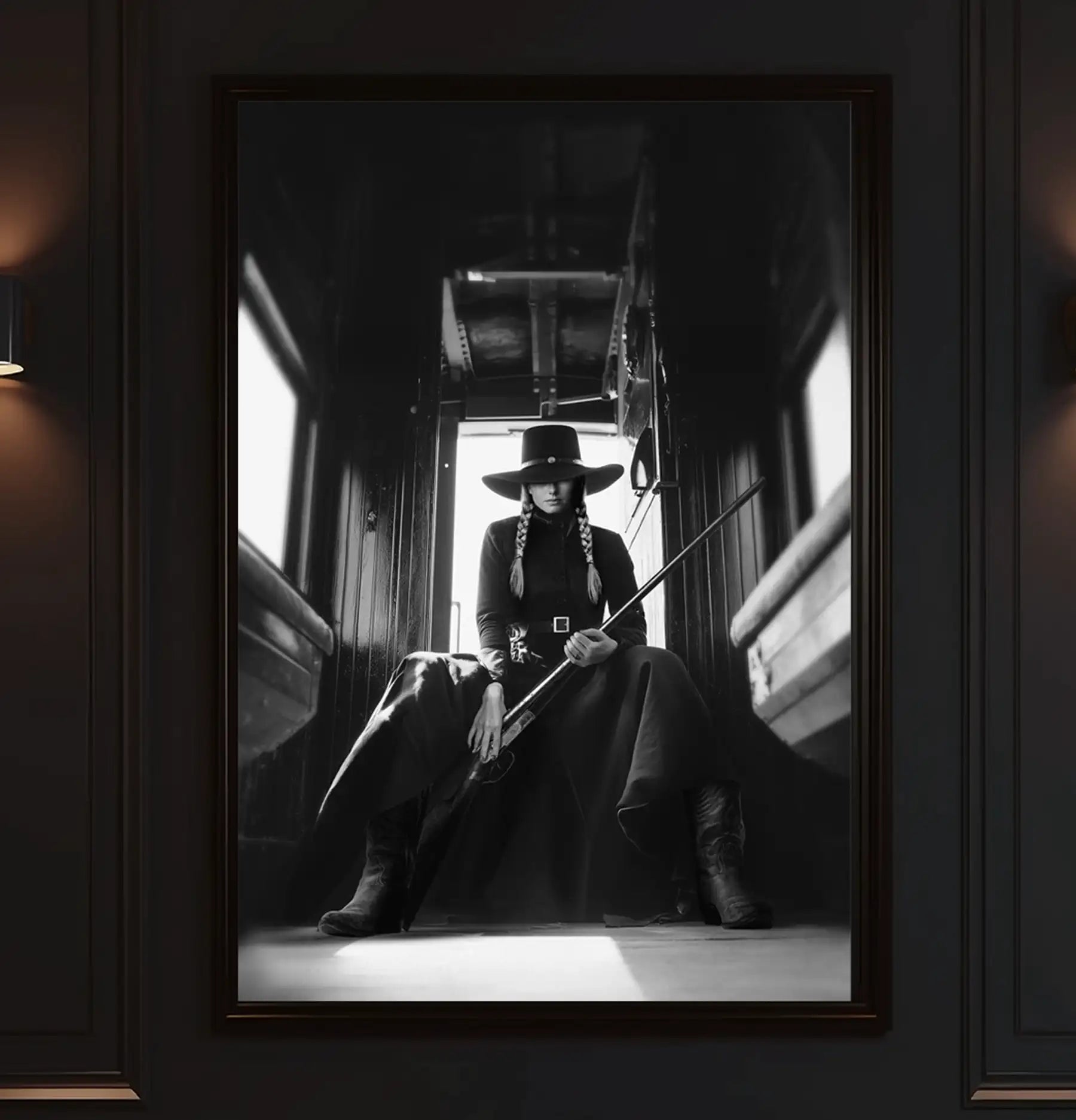 She’s not waiting for a hero — she’s the whole damn story. This cinematic black-and-white wall art channels quiet intensity with a side of "don’t mess with me." Bold, moody, and unapologetically fierce, it’s the kind of art that doesn’t whisper. It stares you down.