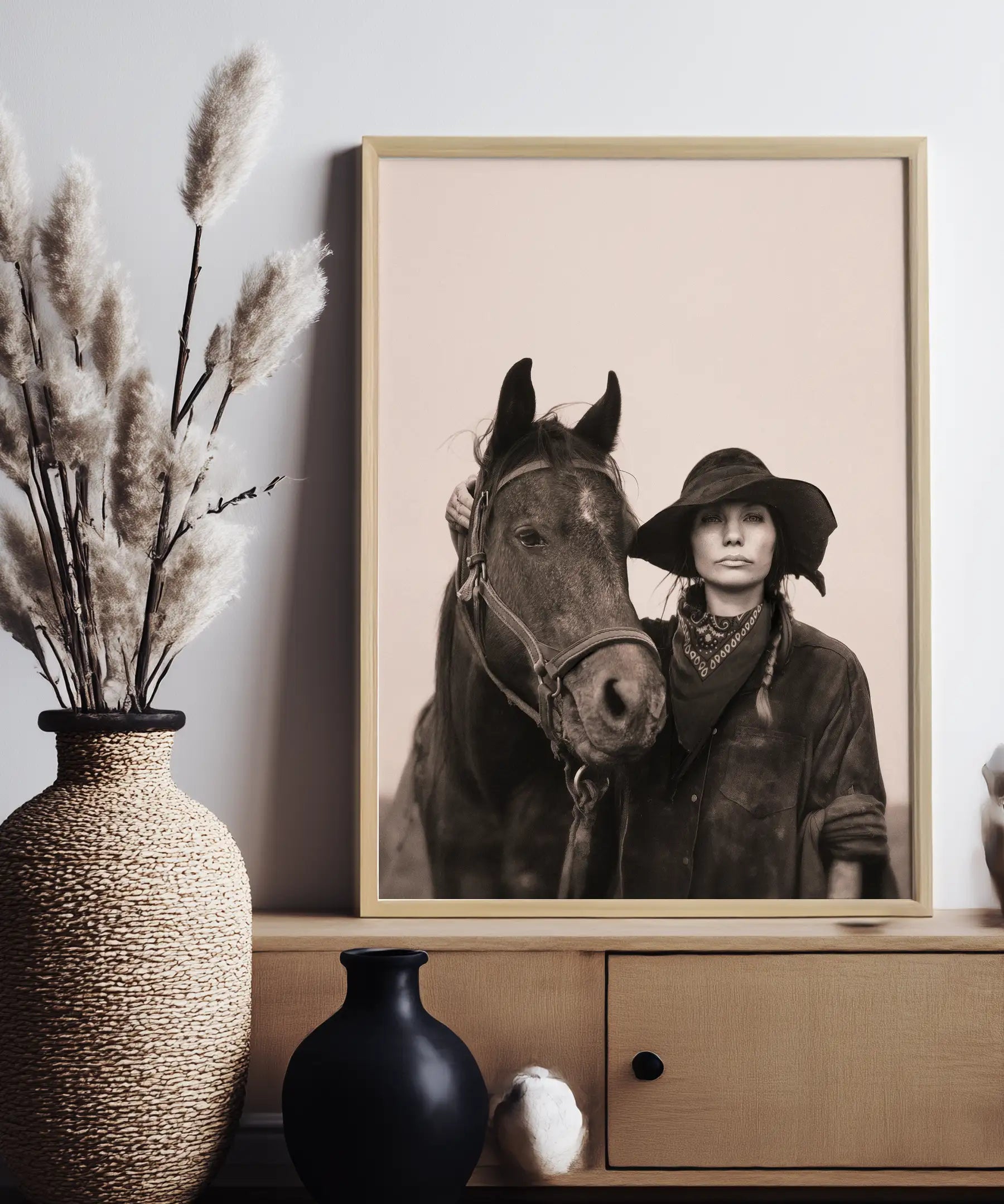 For anyone who's ever trusted a horse more than a man. This striking duo brings rugged charm and a side-eye that says, ‘try me.’ Perfect for cowgirl souls and walls that could use a little grit with their grace.