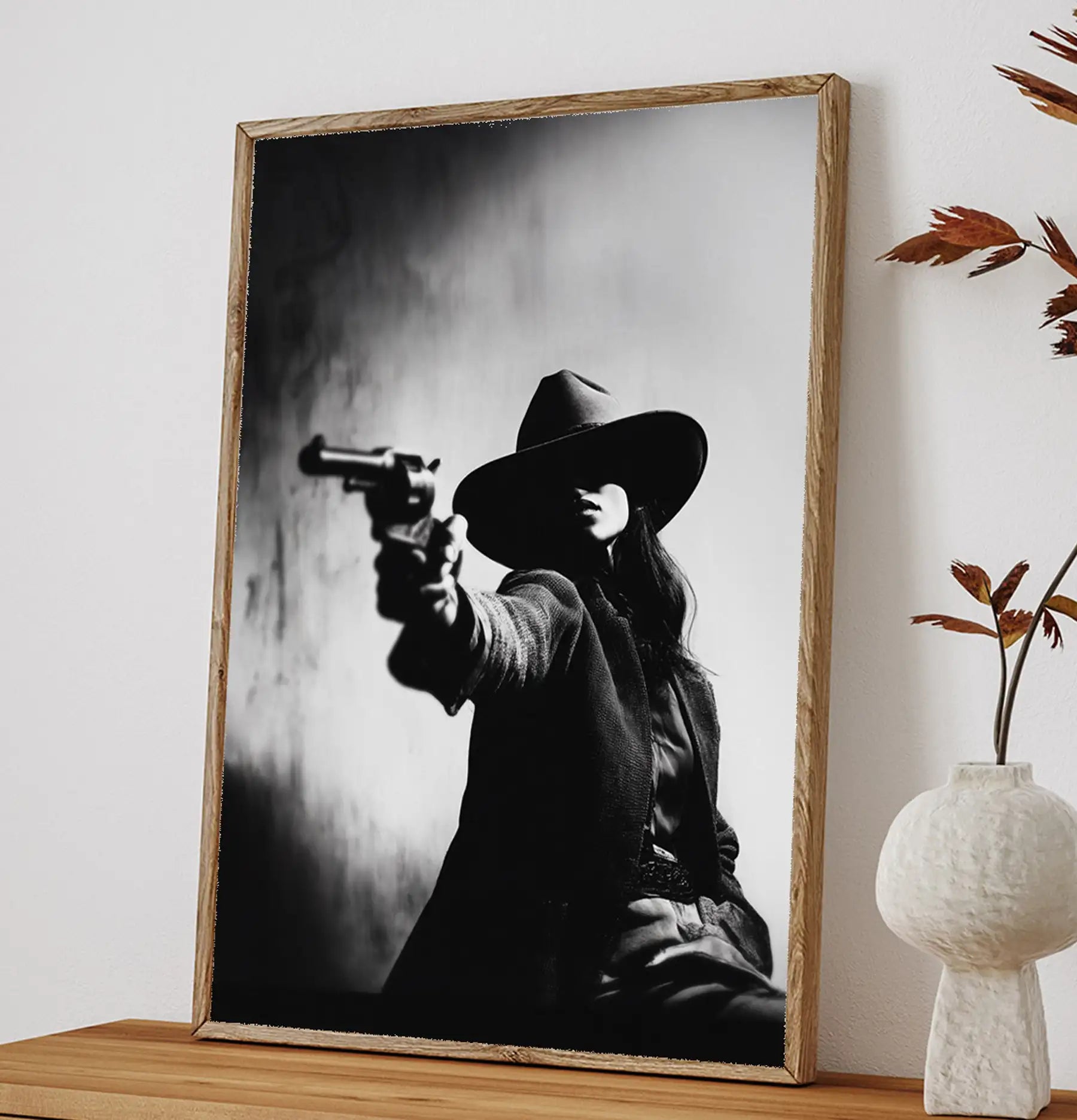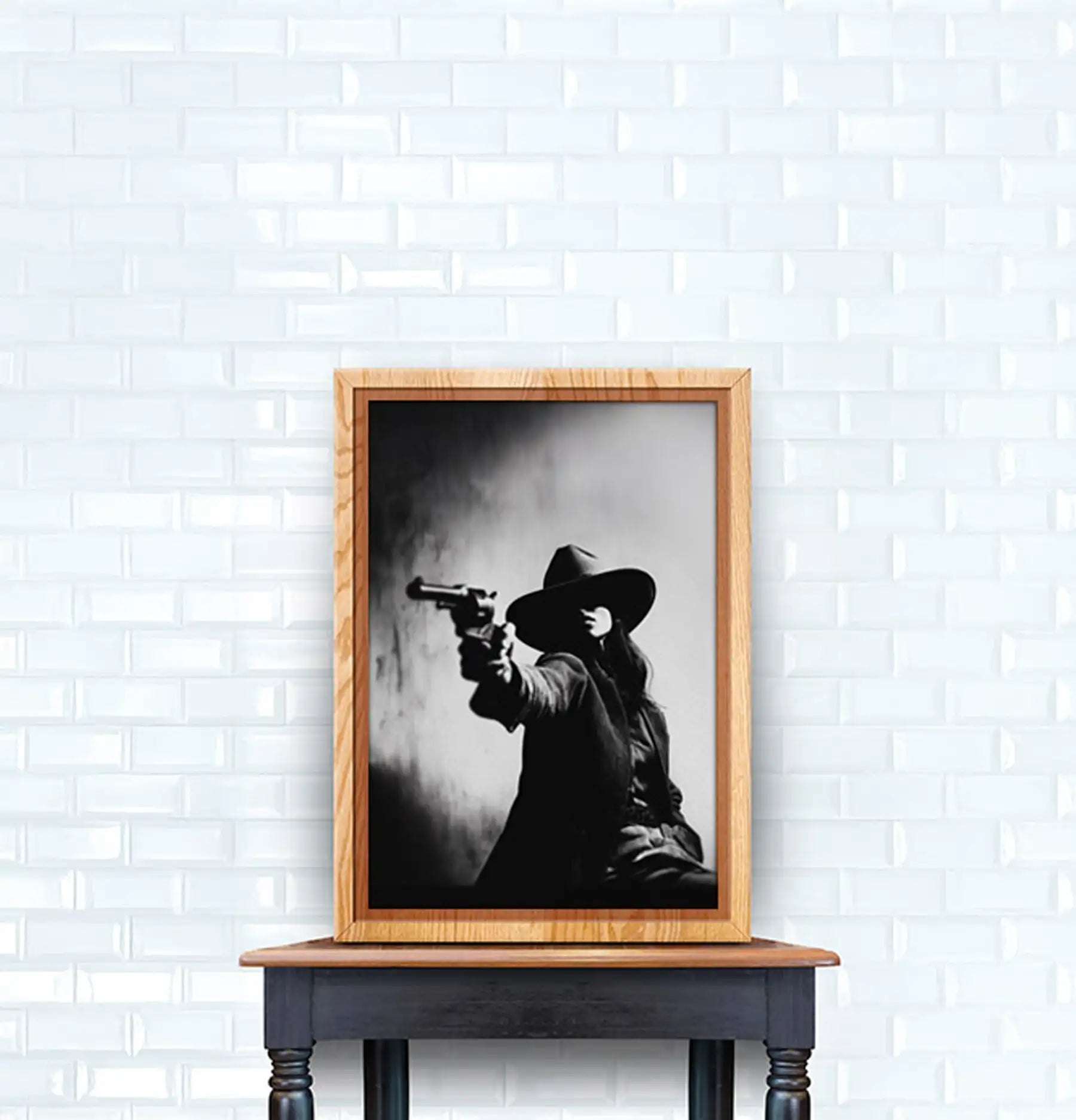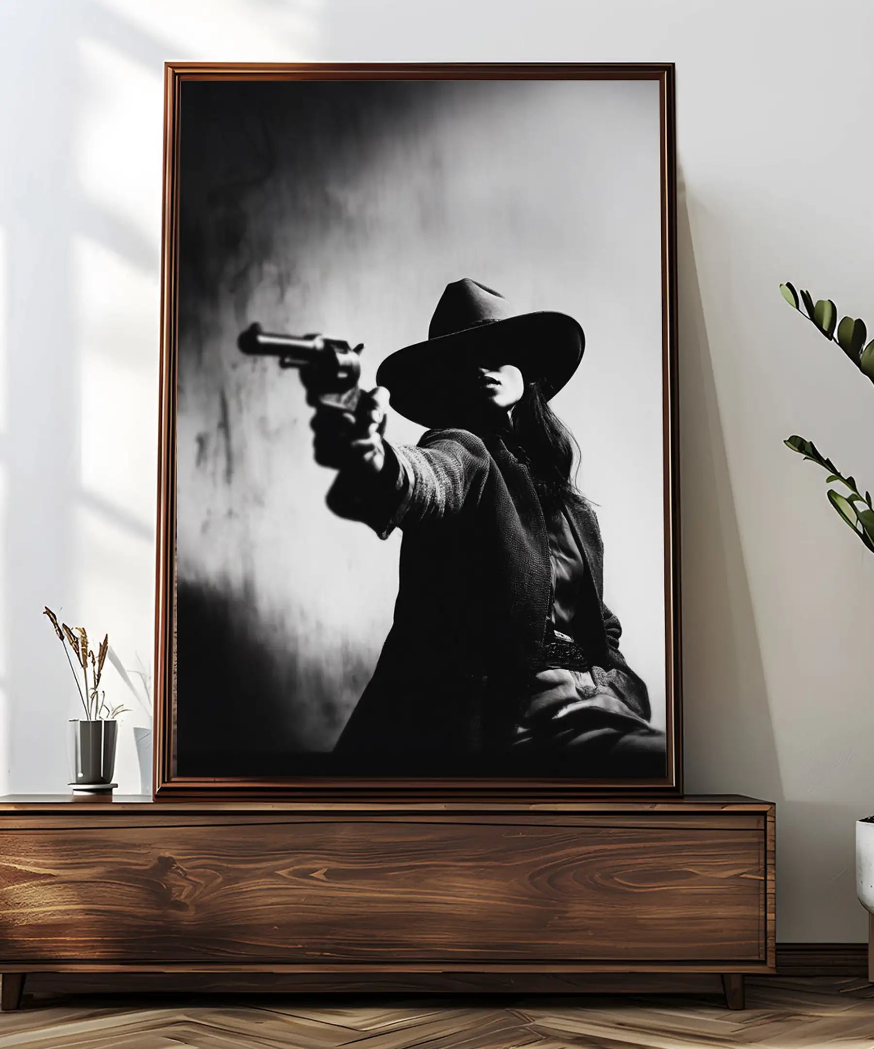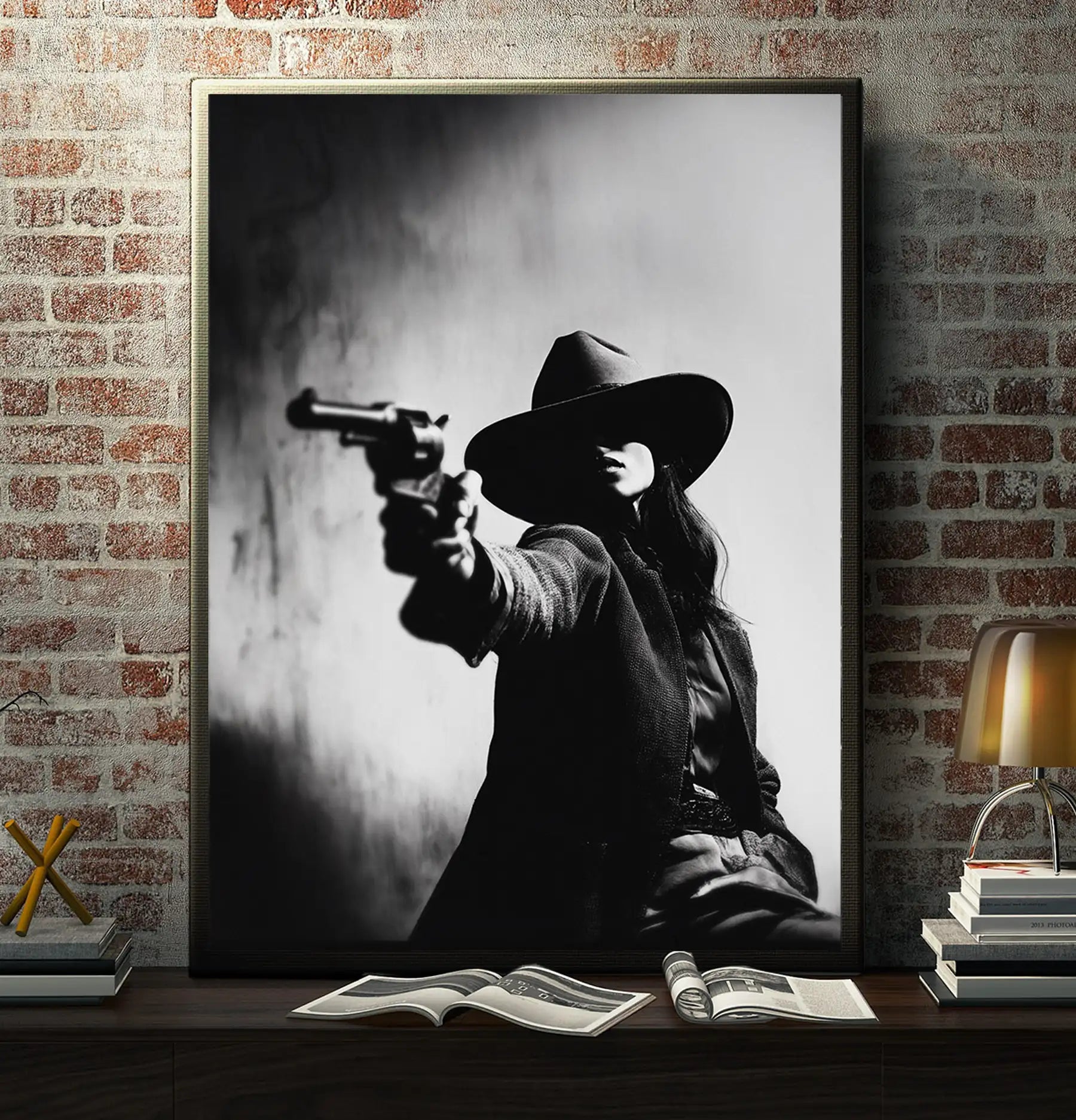 No apologies. No second chances. This striking black-and-white portrait captures a moment of raw power — a lone gunslinger with a quiet warning: don’t push your luck. Perfect for bold spaces and unapologetic souls. It’s fierce, cinematic, and entirely unforgettable.